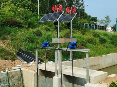 由太陽能光伏板和小型風力發(fā)電機為蓄能電池組充電,電池組有BMS電池管理軟件管控,為永磁無刷直流電機的各類驅動裝置供電,同時為視頻監(jiān)控,壓力、流量、液位傳感器,照明等供電